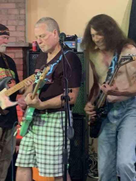 Melana singing Crazy Train with Bryne (left) uncle chuck (drums) and Steve (guitar), not shown Doug (Keys)